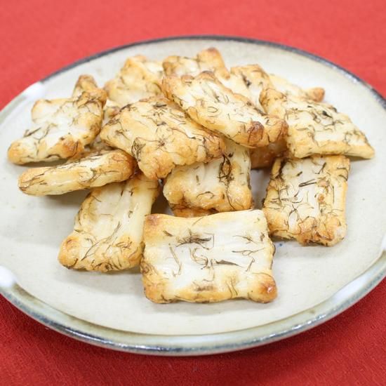 しょうゆ味のあられの表面に刻み昆布をからめた上品な味わいです。